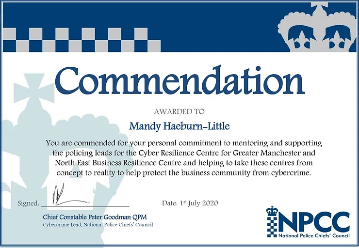 We are delighted to announce that BRIM CEO, Mandy Haeburn-Little, has been awarded a commendation from the National Police Chief’s Council.